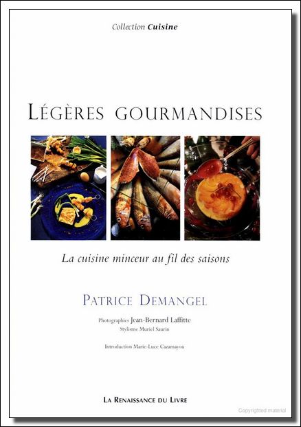 La cuisine, c'est le reflet d'une sensibilité et d'une harmonie entre les produits choisis, la région qui nous entoure et notre art de vivre. Mais c'est aussi la recherche permanente d'un "poids idéal", ou plutôt d'un poids de forme. Les recettes proposées (une centaine, réparties entre entrées, plats et desserts) tiennent compte de cette réalité, mais aussi du fait qu'une cuisine doit être savoureuse et conviviale, en évitant toutefois les excès néfastes pour l'organisme. "L'idée principale, en élaborant mes recettes, a été d'alléger les préparations: pas de matières grasses, pas d'alcool, peu de sucre ou le remplacer par un édulcorant, tout en gardant le plaisir du mariage des saveurs et celui des yeux." Il sera facile à chacun d'adopter ces "légères gourmandises" sans oublier les principes de la gastronomie. Un livre à déguster aussi avec les yeux, grâce aux remarquables photographies qui accompagnent les recettes.